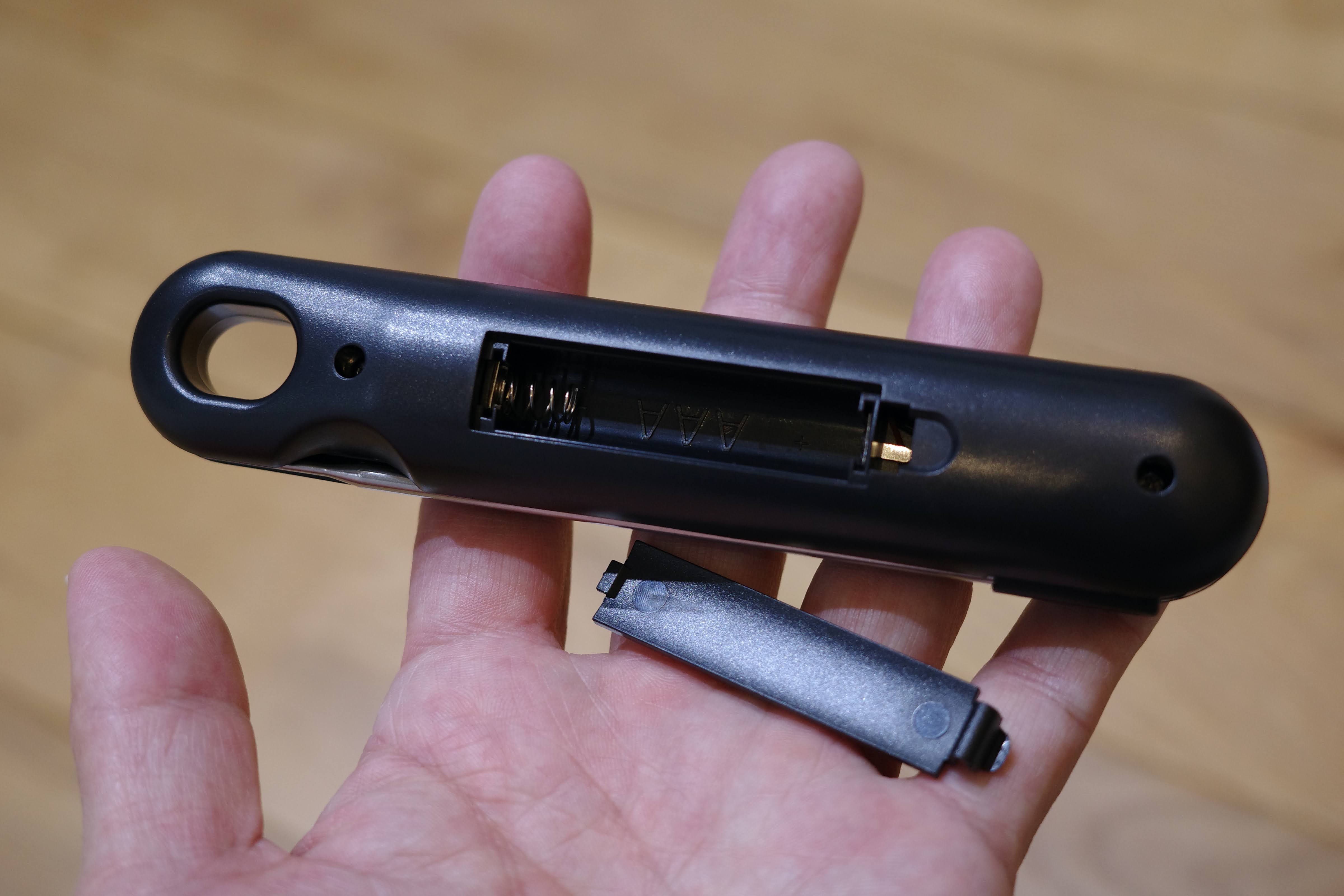 オンオフのボタンとホールドのボタン。1つしかないボタン。みるとホールドと華氏と摂氏を兼ねたボタンだ。